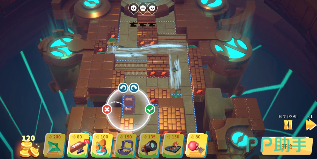 在boss出生之后,大家可以先将左下角的方块移走,让左下角的机关先攻击敌人,然后再将方块移回来,将机关向前移动,这样操作下来就能让我方的伤害达到最大化,然后再搭配上道具的作用,能够做到快速结束战斗。