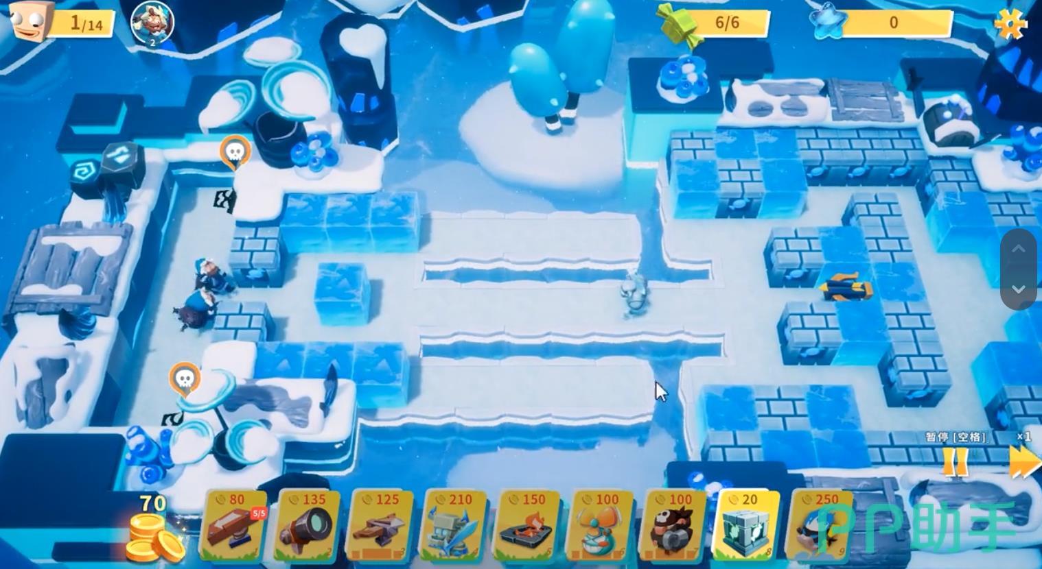 首先,选择一个重点防御区域。考虑到前面离出外点点太近,后面离老挝又太近,所以选择放在中间。中间有一个墙体,我们的主要任务是把这些冰块给消耗掉,然后放置攻击性的墙体。由于中间这个区域狭长,我们不能放很多地面塔,所以选择了空柱和发射型的机关塔。发射型机关塔有连弩和十字标,小编个人偏爱连弩,所以选择了连弩。