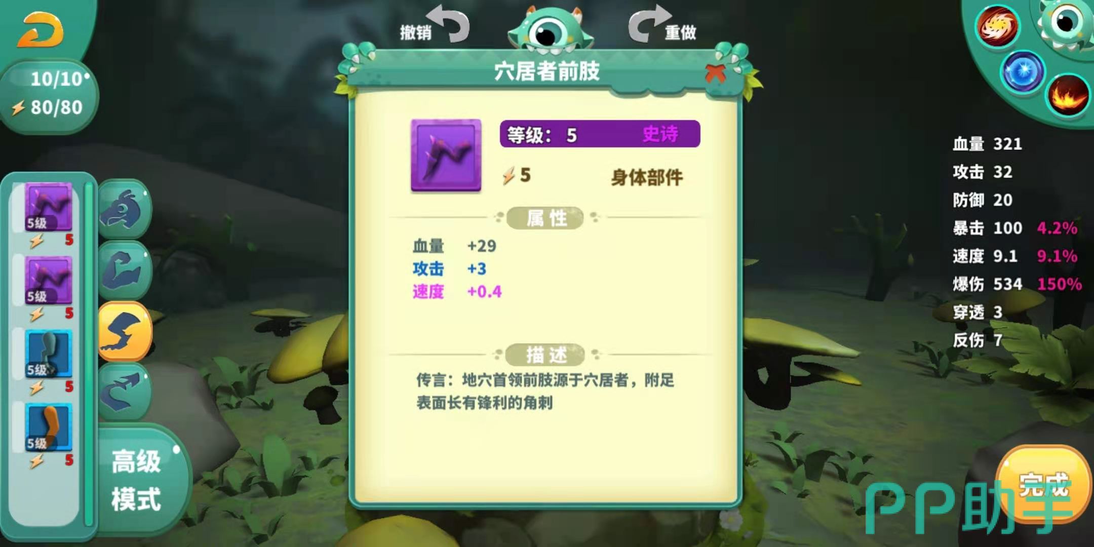 安装完甲壳后,最好将自己身上的其他部位也更换了,一个强力小强诞生了。