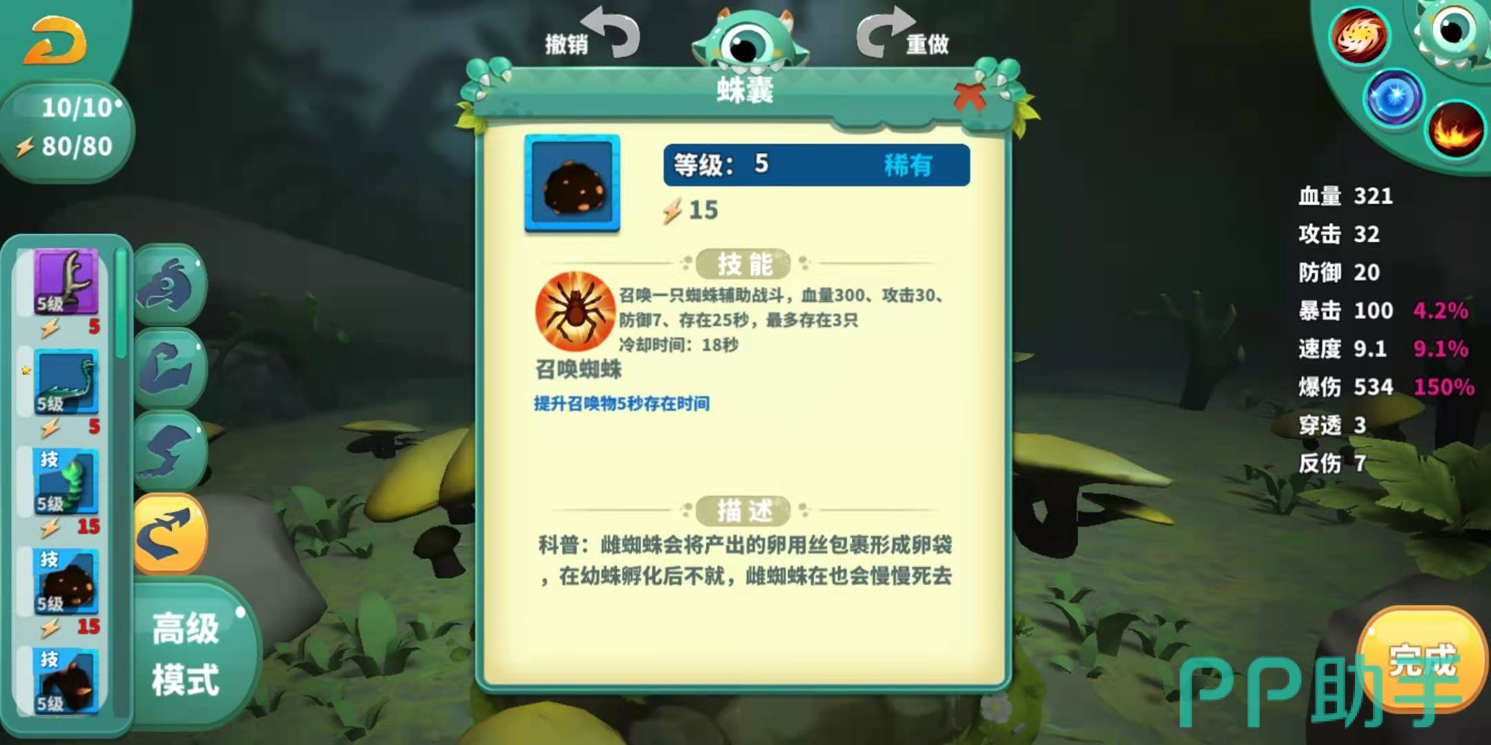 没有尾部的怪物只有两个技能,战斗时存在一定的局限性,但是加上尾部后,怪物就可以拥有三个技能。尾部的技能常见的有翻滚、尾刺、召唤蜘蛛等,在小编看来,这其中在前期最厉害的还要属召唤蜘蛛这一技能,可以召唤一个救兵小蜘蛛,命中敌人后还有控制,除了CD较长,其他的都很实用。