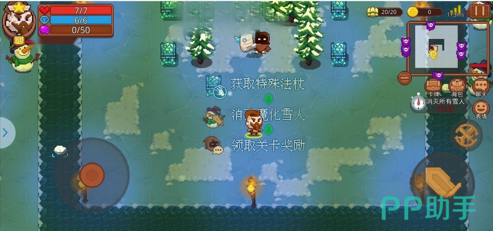 像雪人这个关卡,你就需要先将宝箱打开,然后使用对应的法杖,才可以将雪人打败。这个关卡可以说是比较简单的了,对于新手玩家来说,应该都是闭眼都能过的系列,轻松就能够完成任务获得奖励。