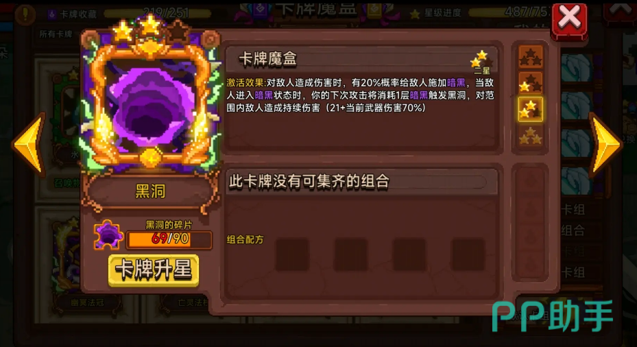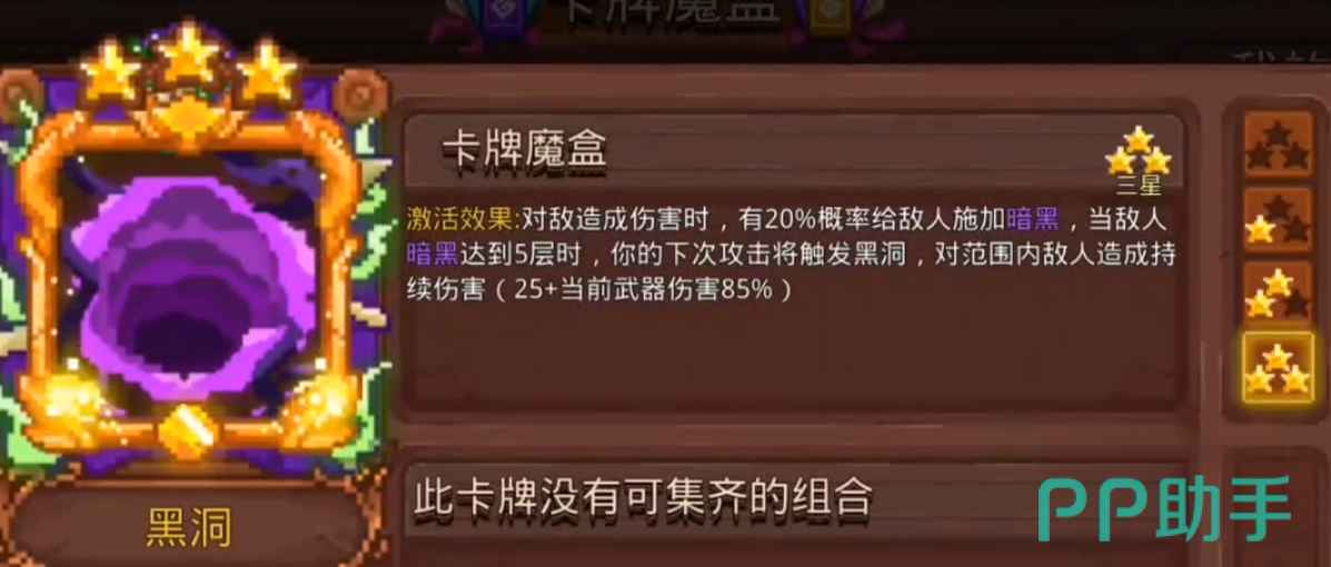 接下来要介绍的两张可则是亡灵法杖和黑洞。先来说说黑洞,这张卡能够将其他的卡牌效果出动,同时可以在敌人身上造成伤害,再进行黑暗标记。等到标记叠加到5层时,就能够将黑洞效果展现,对于增伤来说是非常有用的。同时触发了其他卡的效果,伤害就更是叠加了。亡灵方丈的话,就能够起到辅助黑洞的效果,可以在发动的时候协助黑洞进行增伤,还能够实现为黑洞叠层数的作用。