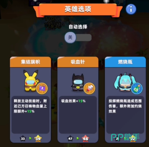 当大家在体验一段时间后,接下来还会出现一个英雄选项,这里主要是加强英雄的技能。为了能提升成功的几率,就应该尽可能加强伤害技能,如果恢复能力比较弱,就应该注重提升吸血效果。另外也可以增加召唤物的血量,或者是让玩家得到护盾的效果。如果对方的血量比较高,也可以适当性增加一些能够具备破甲能力的技能,一旦英雄能量满了之后,就可以随时的释放技能。