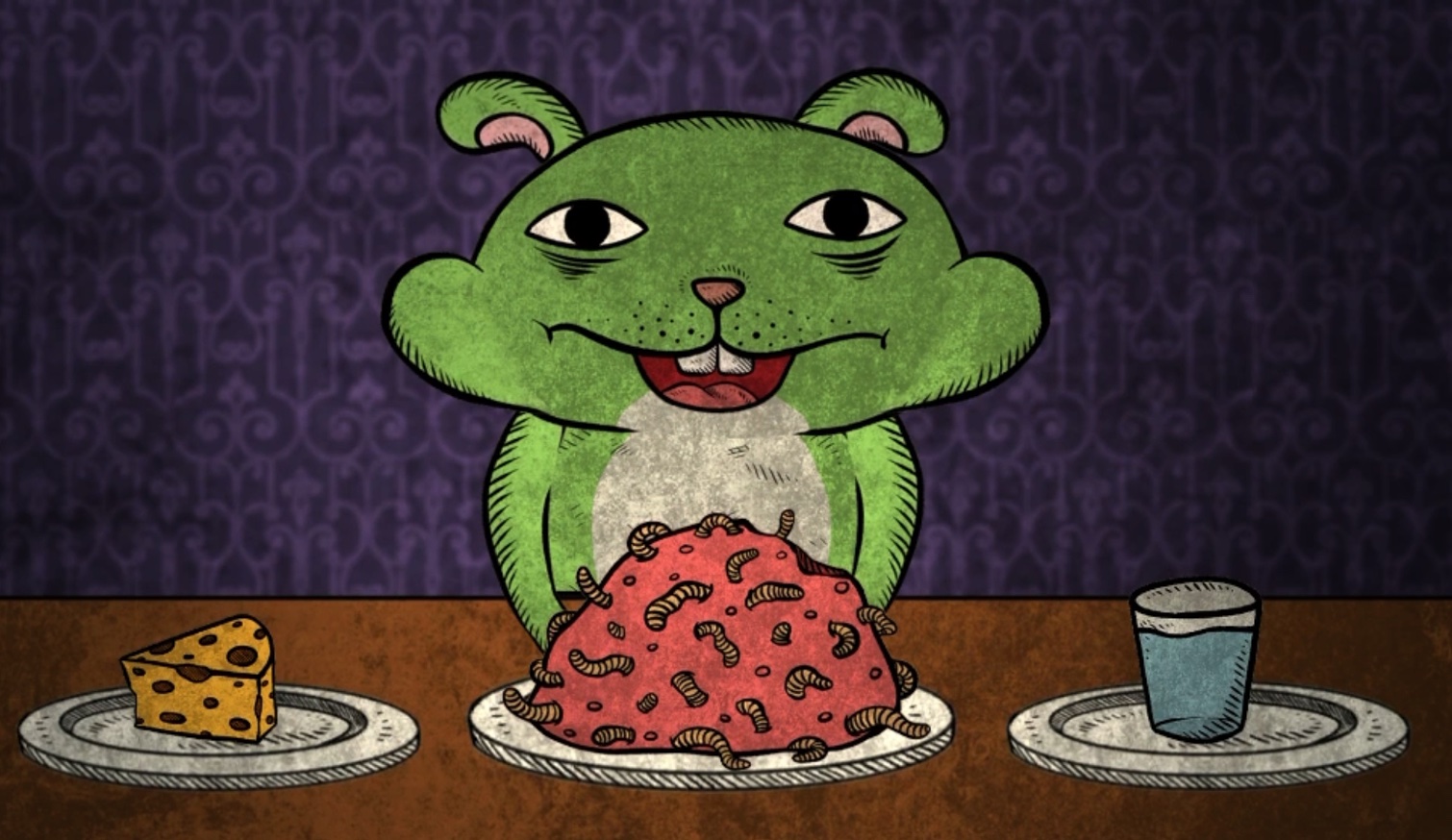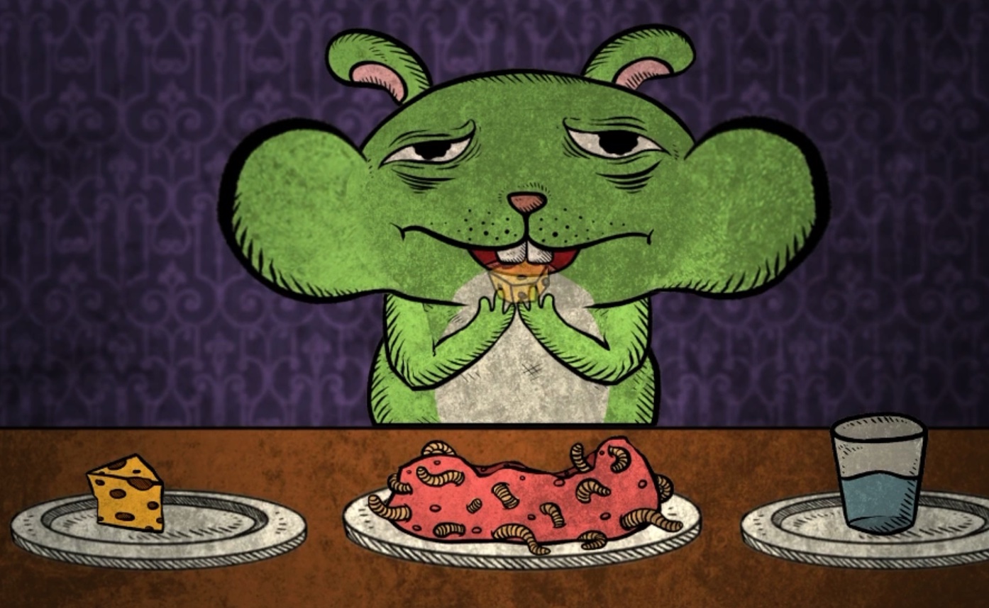 初次进入游戏,看到这一幕的确会让不少玩家感到挑战性十足。画面中展现了小仓鼠面对着一盆充满蛆虫的食物,食物的旁边是一盘诱人的奶酪,另一侧则摆放着一杯清水。这个关卡显然是要求小仓鼠将面前的食物吃掉。然而,情况并不那么简单,小仓鼠在进食的过程中会表现出痛苦和不适,这时玩家需要施以援手,喂食奶酪或者水,直至小仓鼠吃完这盘食物。