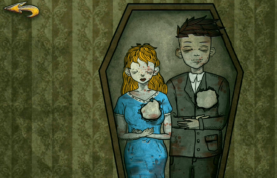 最后一幅画根据出现的棺材上方出现的各个箭头的指向来打开棺材,在棺材中拿到父母的两个心脏就可以进入下一个章节的复活剧情啦。