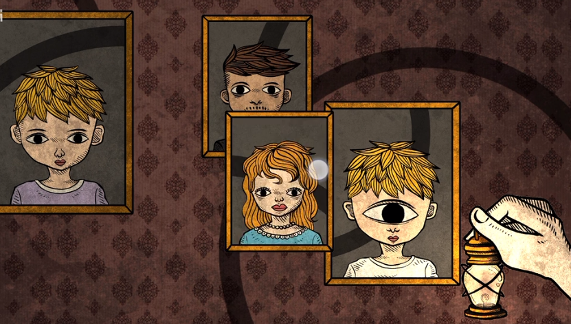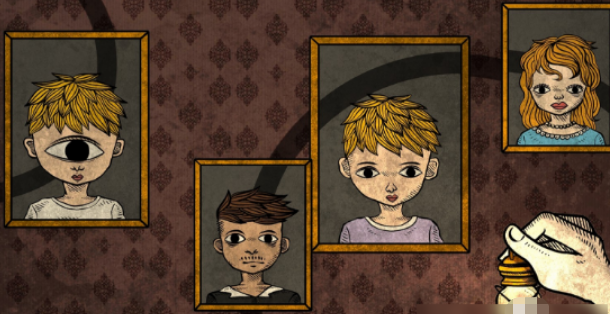 其实这个关卡的难度在于大家对画面的理解上面,首先大家进入这个关卡之后看见的就是四张画像,这四个画像都是家庭成员代表的四人,根据剧情的走向,在这里哥哥也开始对家庭的想法产生变化,所以这个关卡中大家要观察的是四个人背后的线条。