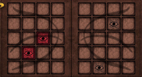 第11幅画出现的是一只鱼,鱼的身上有很多不用颜色的眼睛,眼睛点击的时候会轮换颜色,玩家需要点击颜色让连续两次点击的颜色都一样,最后可以从闭上的眼睛里面获取献祭道具鱼眼睛。