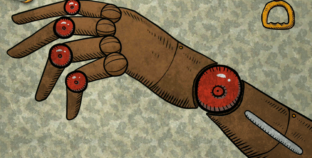 第一幅画中出现了弟弟,弟弟的缺陷不在于脸上,所以这一关中出现的义肢就是给弟弟的,弟弟安装好之后放大手的部分,其中的关节处以及指节是可以点击的,根据一开始展现的画面中动态的显示去点击关节即可。