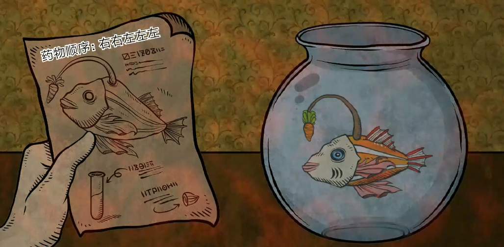 调配的过程中顺序很重要,在上面需要通过前面两次按左边的顺序,然后后面的三次要用右边的顺序来加入药水吗,这样的灯笼鱼就会长成头上有胡萝卜的样子了,长成这个样子的灯笼鱼才是顺利过关的样子哦,如果中途一但有畸变的情况就说明大家的顺序错误需要重新来,所以大家一定要注意一下药水的顺序哦。