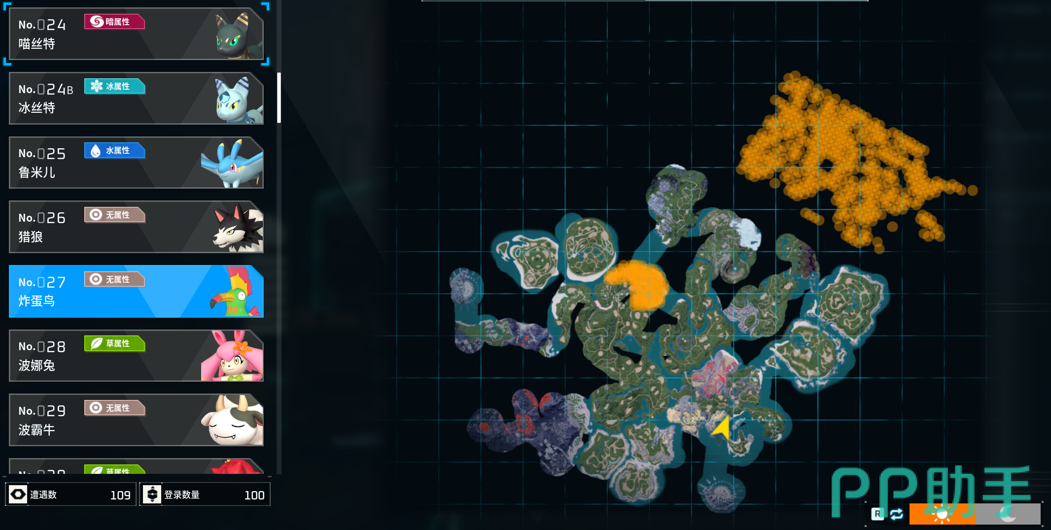 会飞这可不得了啊,很多搬运工都会经常自己卡住,而烽歌龙像这种会飞的就不那么容易卡住了,20级左右三级搬运技能,你难道不心动吗?烽歌龙刷新点在地图的左下角,中部岛屿区域也有分布,可以前往下图黄色标注的区域寻找,还是比较容易找到的。