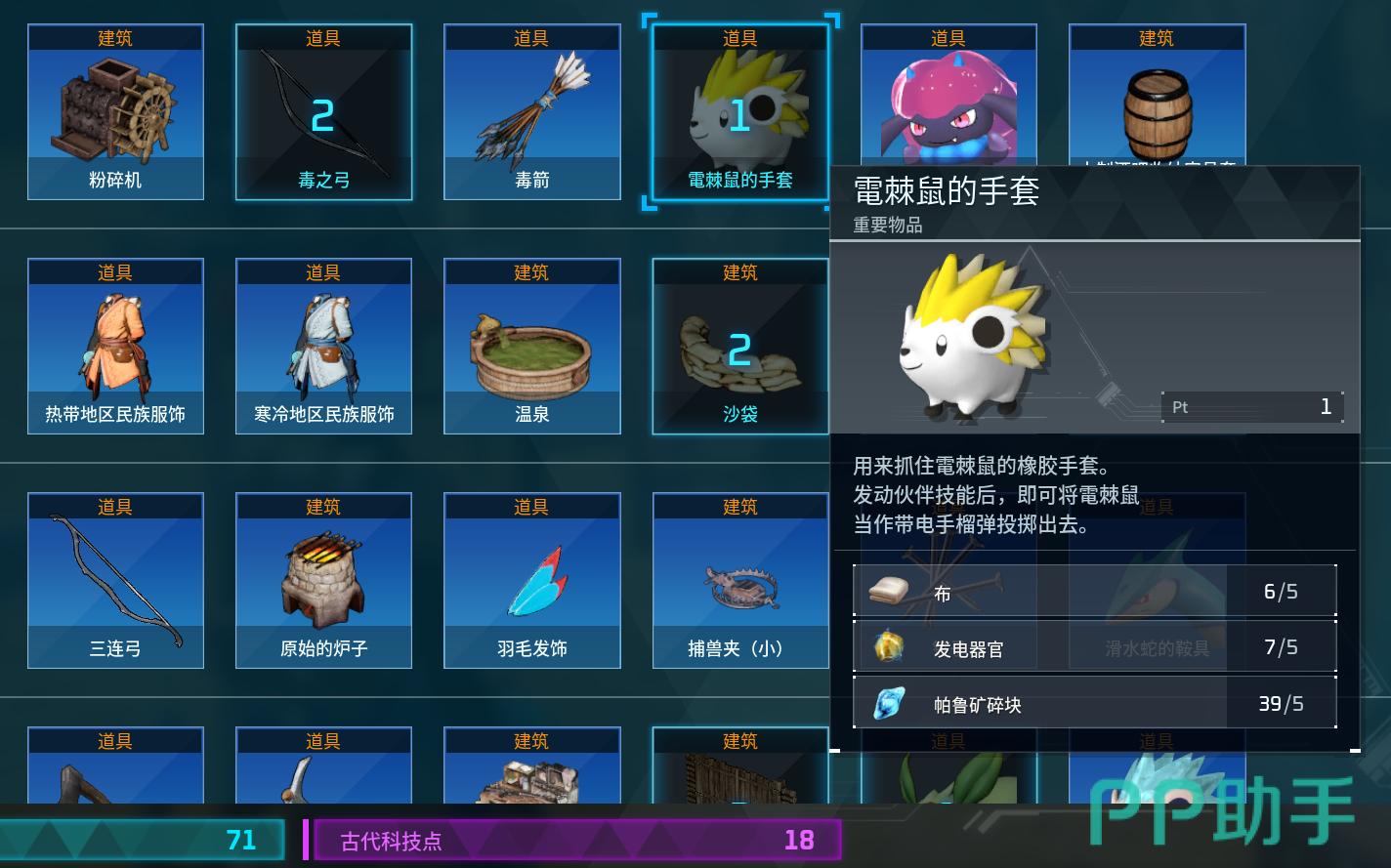 但是这里小编要介绍一下雷棘鼠的特殊用法,就是我们可以通过帕鲁制作台来制作已经解锁的雷棘鼠手榴弹,也就是俗称电击雷的物品,能够造成一次性的伤害及麻痹效果,使我们后期捕捉boss的神器之一。但缺点就是雷棘鼠也变成一次性的了,需要多次捕捉,而且占用一个帕鲁格子。但是大家完全可以玩一个人物主c流就是增强我们自身实力,然后带五个电刺猬手榴弹来进行输出。