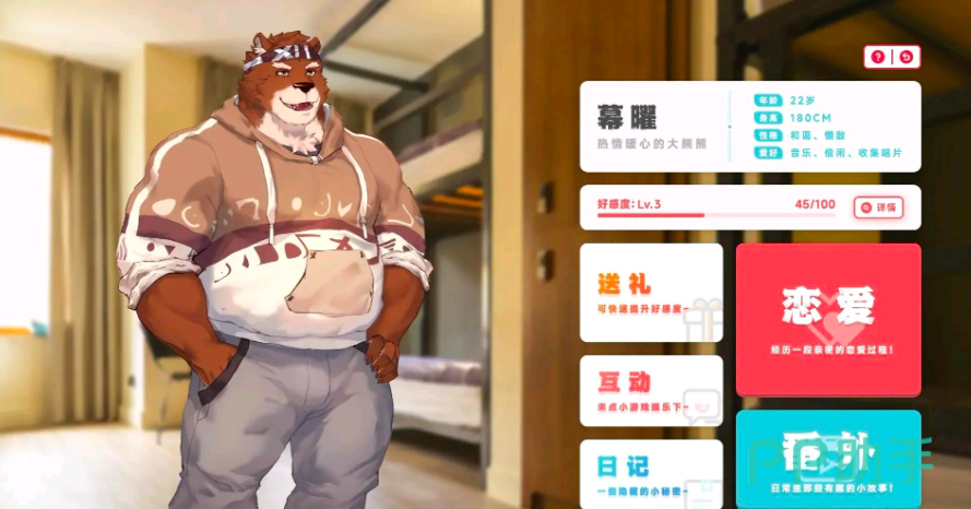 好感度的提升方法也是十分简单的,大致分为三种,第一送礼,第二互动。第三,完成一些番外的恋爱任务。在游戏当中礼物奖品是非常丰富的,玩家可以通过完成各类目标任务获得积分,然后从商店当中兑换出不同的兽人所喜爱的礼品礼包,然后将礼品礼包送给他们。当然互动模式对于一些不爱氪金的玩家们来说是不错的选择,通过点击互动可以触发各种有趣的对话与兽人好友完成一些有趣的沟通。而随着好感度的提升就可以以与他们开启恋爱模式在游戏当中很多恋爱场景都可以解锁体验。