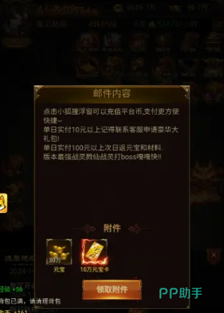 海量奖励礼包:游戏为玩家准备了海量的奖励礼包,只需上线游玩即可轻松领取,包含大量元宝和代金券等。