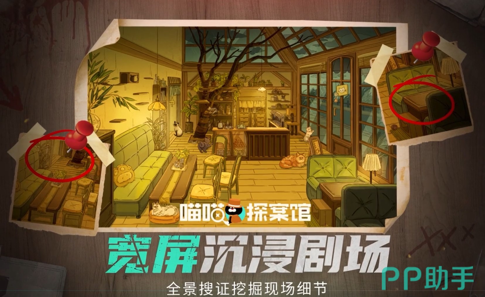 而在游戏上线之后,小伙伴们只需要通过豌豆荚APP搜索“喵喵探案馆”,找到它之后就能进行下载啦,下载安装之后就可以尽情体验其中的各种剧本故事了。