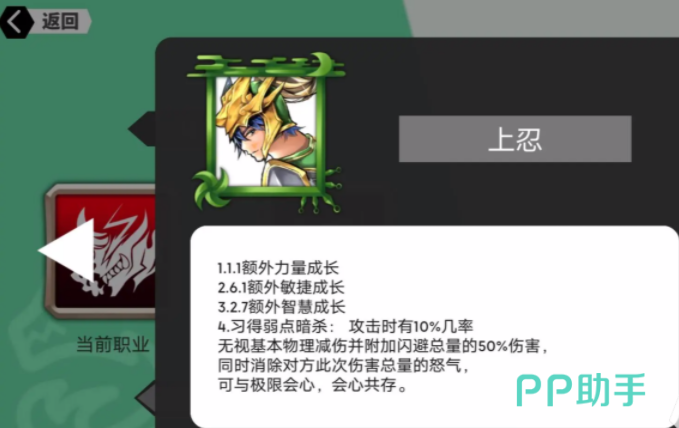 马超想要脱离工具人这个称号,就一定需要转职业,小编比较建议大家优先转为上忍,这个职业和马超这个角色非常的契合,给马超增加的被动技能可以直接无视掉敌人的物理伤害抗性以及躲避,也就是会百分百重伤敌人,而且还会让敌人积攒的怒气值降低,直接影响敌人释放技能的频率,再配合上马超自己的特性,打出的伤害想当可观。