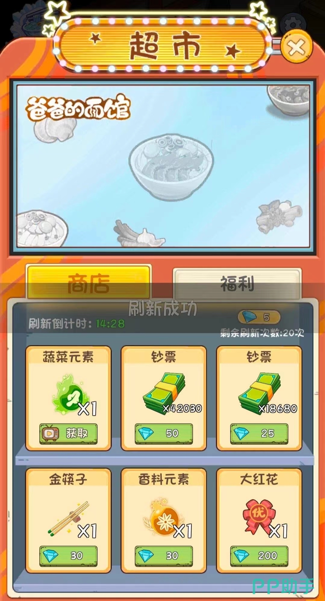 好了,上面所有内容就是今天为大家介绍的爸爸的面馆大红花怎么获得的相关信息,这几种获取大红花的方式都还挺简单的,大家都可以去尝试一下,这样概率就更大了,也希望各位玩家尽快得到红花,这样就能让自己的面馆得到很大的提升。