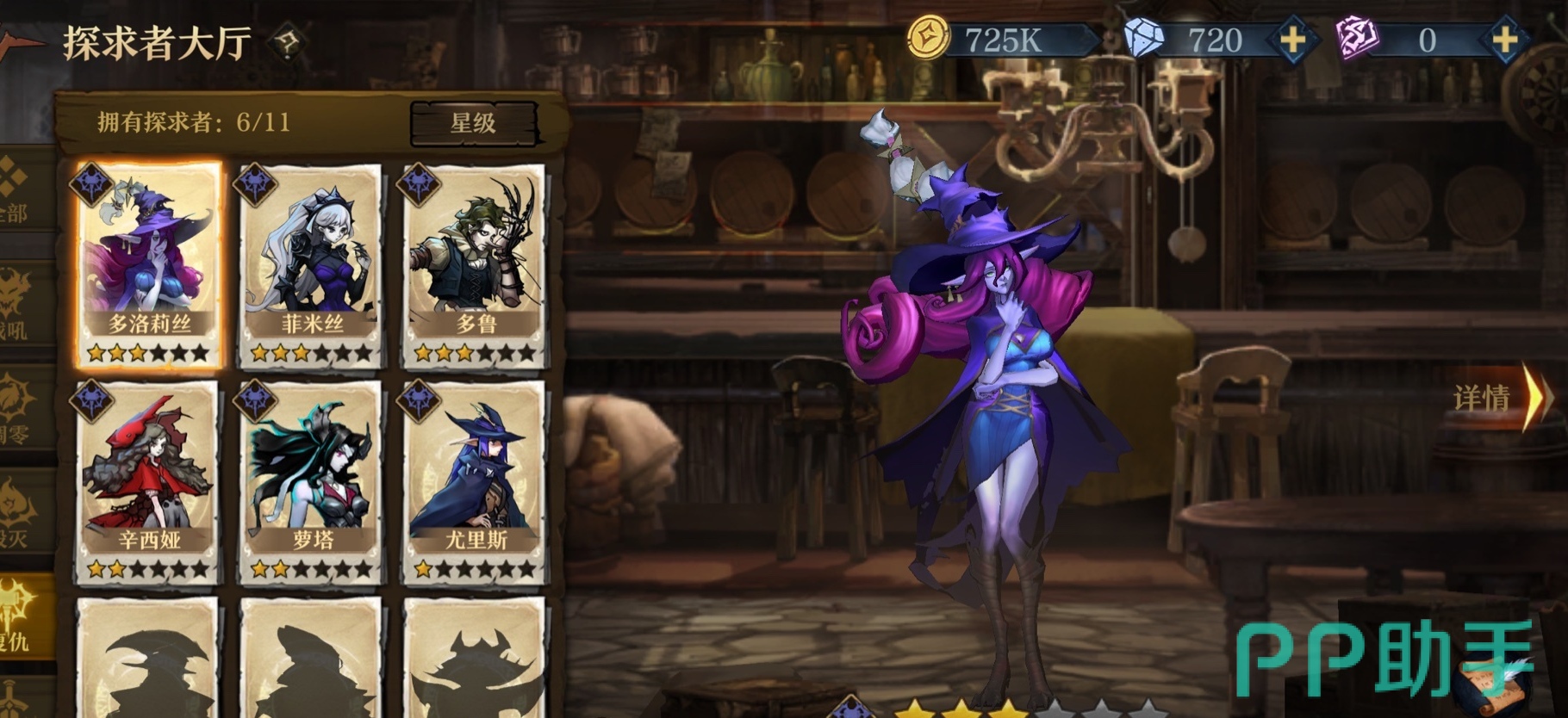 小编推荐去打无尽模式的阵容是有两种的,第一种通关阵容是由三个辅助与一个肉盾组成的,他们是多洛莉丝、索玛、罗菲、布洛克。