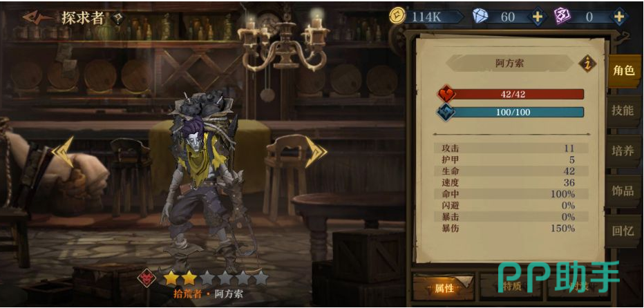 另一个二星角色便是大家熟悉的拾荒者阿方索,大家可能会疑惑,这货居然是二星,背叛者反而是一星,阿方索确实在攻击、生命值方面比较平庸,但是他的速度快,可以抢占攻击回合,并且技能方面也很不错哦。
