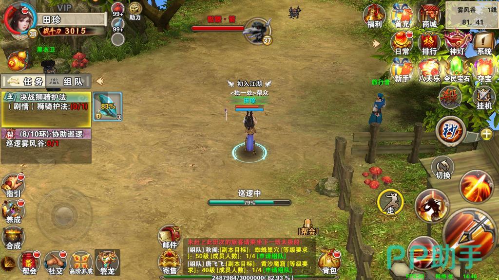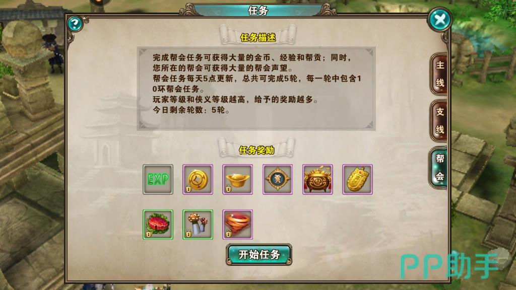 4、通过跑环任务,这类任务包含游戏中的支线任务和帮派任务。每个任务下都需要玩家通过五十环才可以完成,每完成一环任务就可以获得对应的奖励。任务的难度是较低的,只需要玩家花费一定的时间就可以做到。