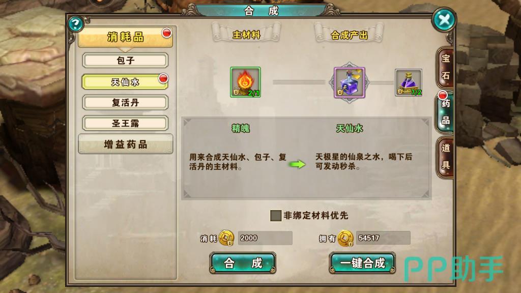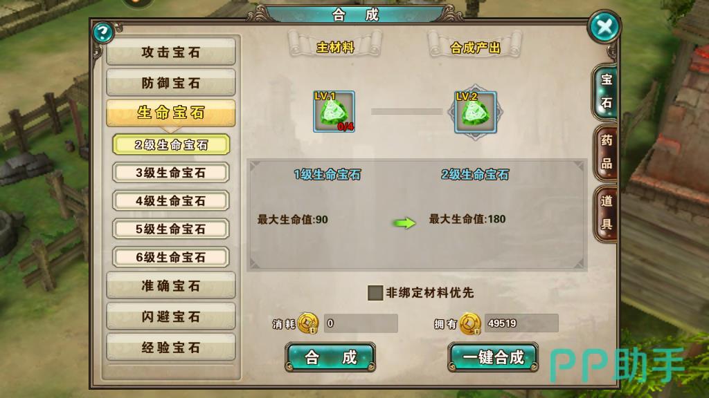 第二个方式可以通过合成来获得,在合成的界面玩家可以使用宝石原料来进行合成。这个方式获得的宝石类型和等级是随机的,是一个比较考验玩家运气的获得方式。如果玩家运气够好的话,获得高级的五品宝石也是很有可能的。