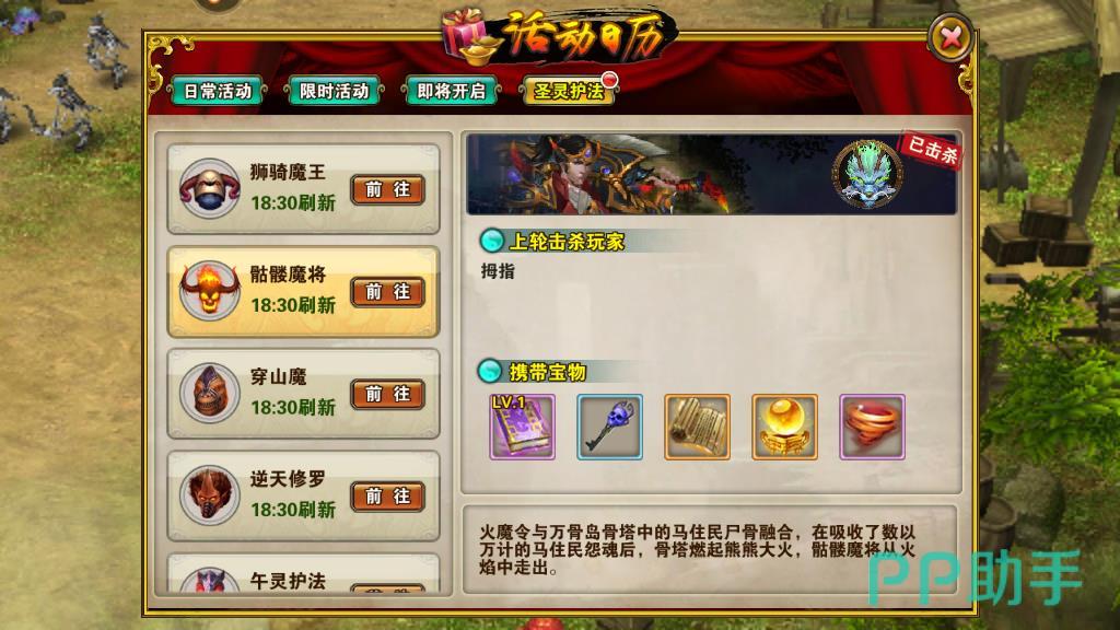 除了副本挑战之外,玩家在40级的时候可以开启圣灵护法这个野外BOSS的挑战。在该玩法中有很多的玩家会对护法进行攻击,在死亡之后护法的道具是直接掉落在地上的。想要获得道具的奖励,玩家直接点击对应道具进行拾取就行。