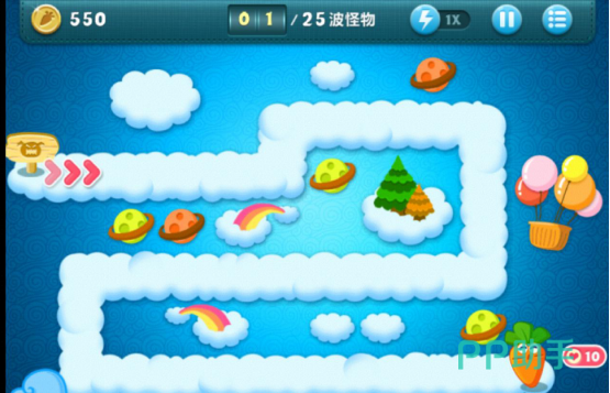 要是有怪兽经过,火炮可以在几秒之内消灭怪兽,所以在一二回合的时候,玩家是不用担心怪兽会对萝卜有伤害的,而且它消除道具之后,还可以增加金币的数量,用来布置更多的塔防。