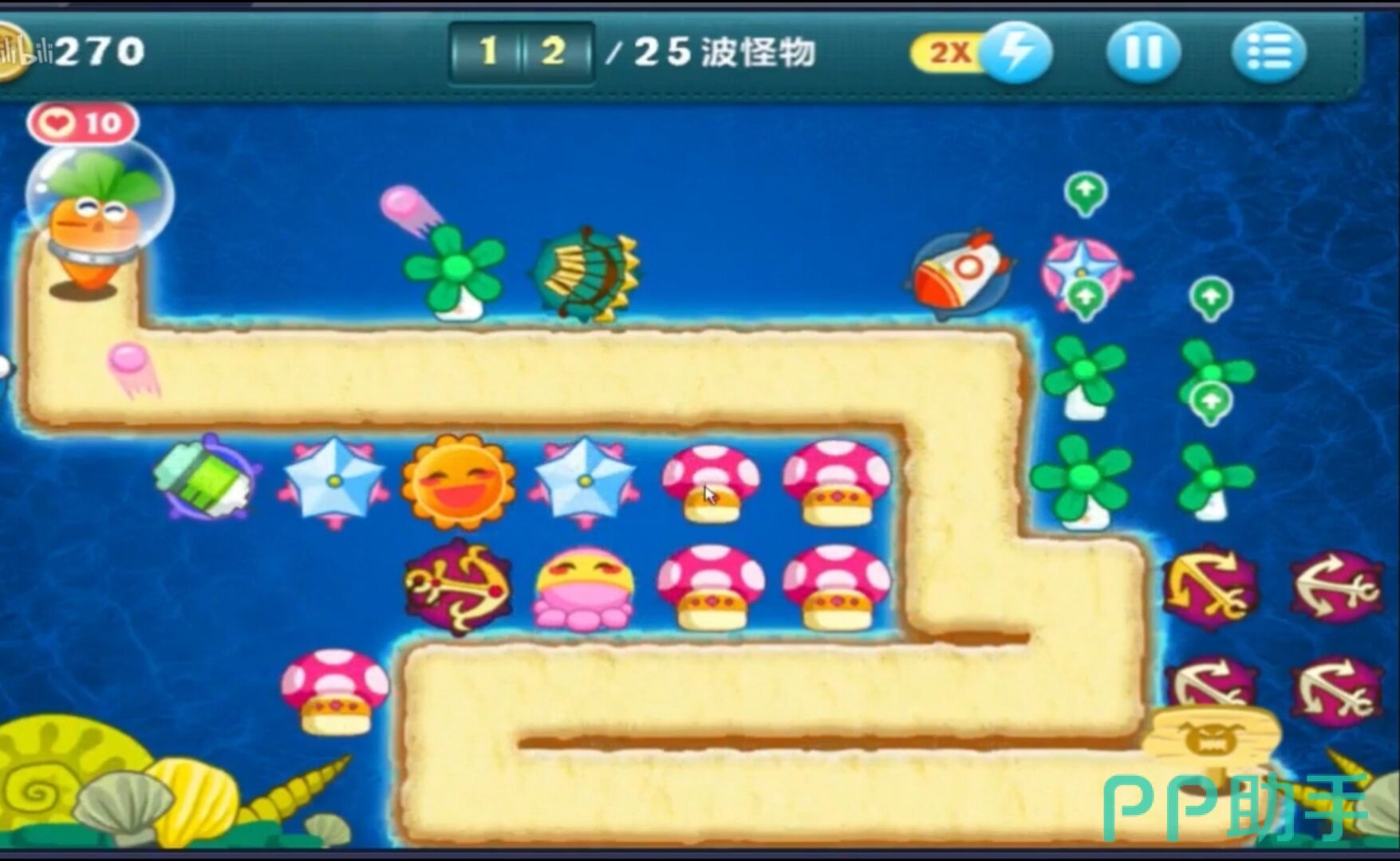 当萝卜在海底受到伤害时,这个时候应该怎么做才可以让萝卜免受伤害呢?快来一起看看保卫萝卜深海10攻略图解,对称布置塔防是防护关键点!