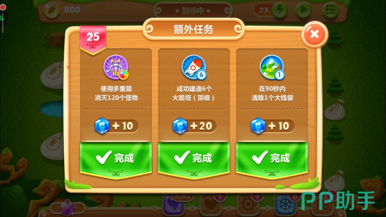 坚持打完剩下的几波,注意把控好火箭塔的数量,任务二打成,成功通关并且金牌到手。