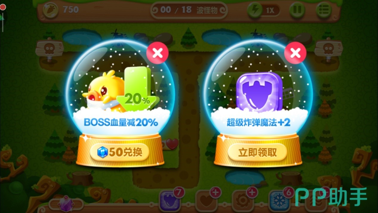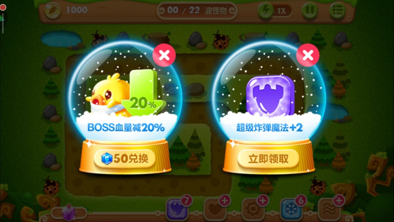 除了炮塔策略,道具的合理使用也能帮咱们轻松拿金萝卜。游戏里有些隐藏道具打掉后会送额外炮塔或金币,所以前期可以适当分出一部分火力清理障碍物。不过要注意节奏,别光顾着打道具忽略了怪物,否则容易翻车。魔法道具像全屏冰冻或极速攻击可以在关键时刻救场,比如最后一波怪物太多时,直接冻住它们集中消灭。有时候升级炮塔或解锁新角色后再回来打,难度会降低不少。