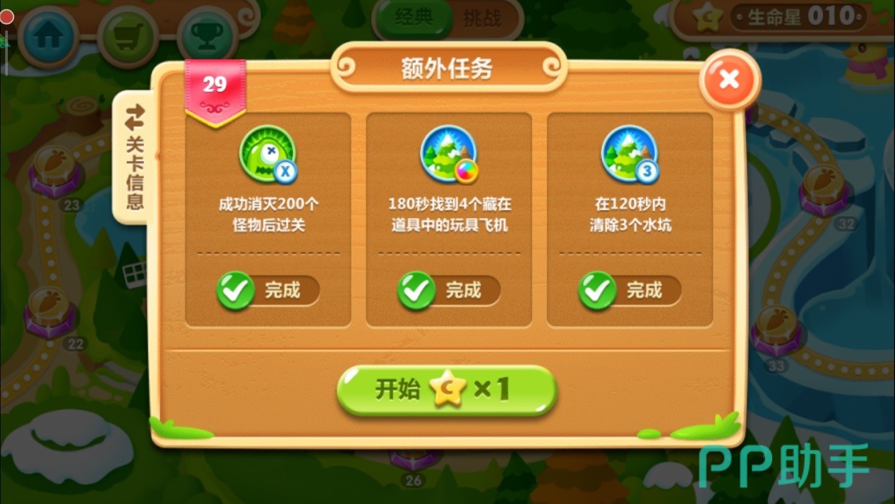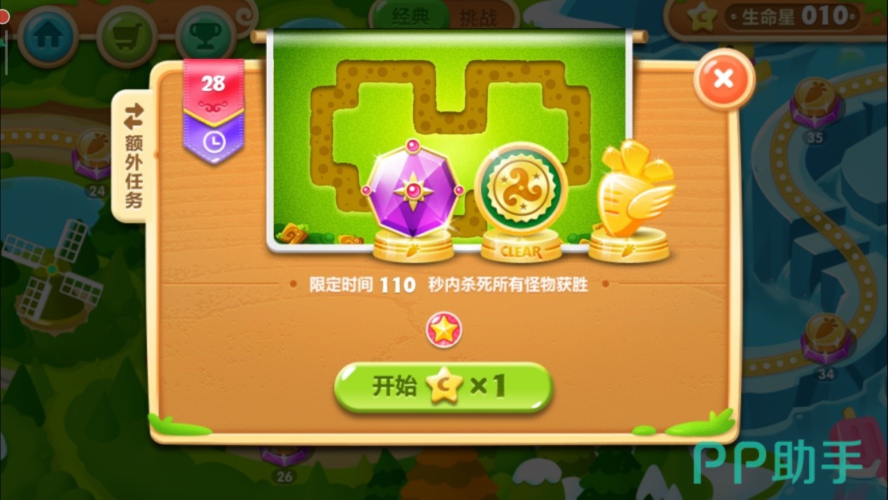 本关为怪物堡垒模式,想要获得三星评价,需要在前期完成额外的击杀怪物任务。以下攻略将详细指导您如何高效通关并获得所有星星奖励。