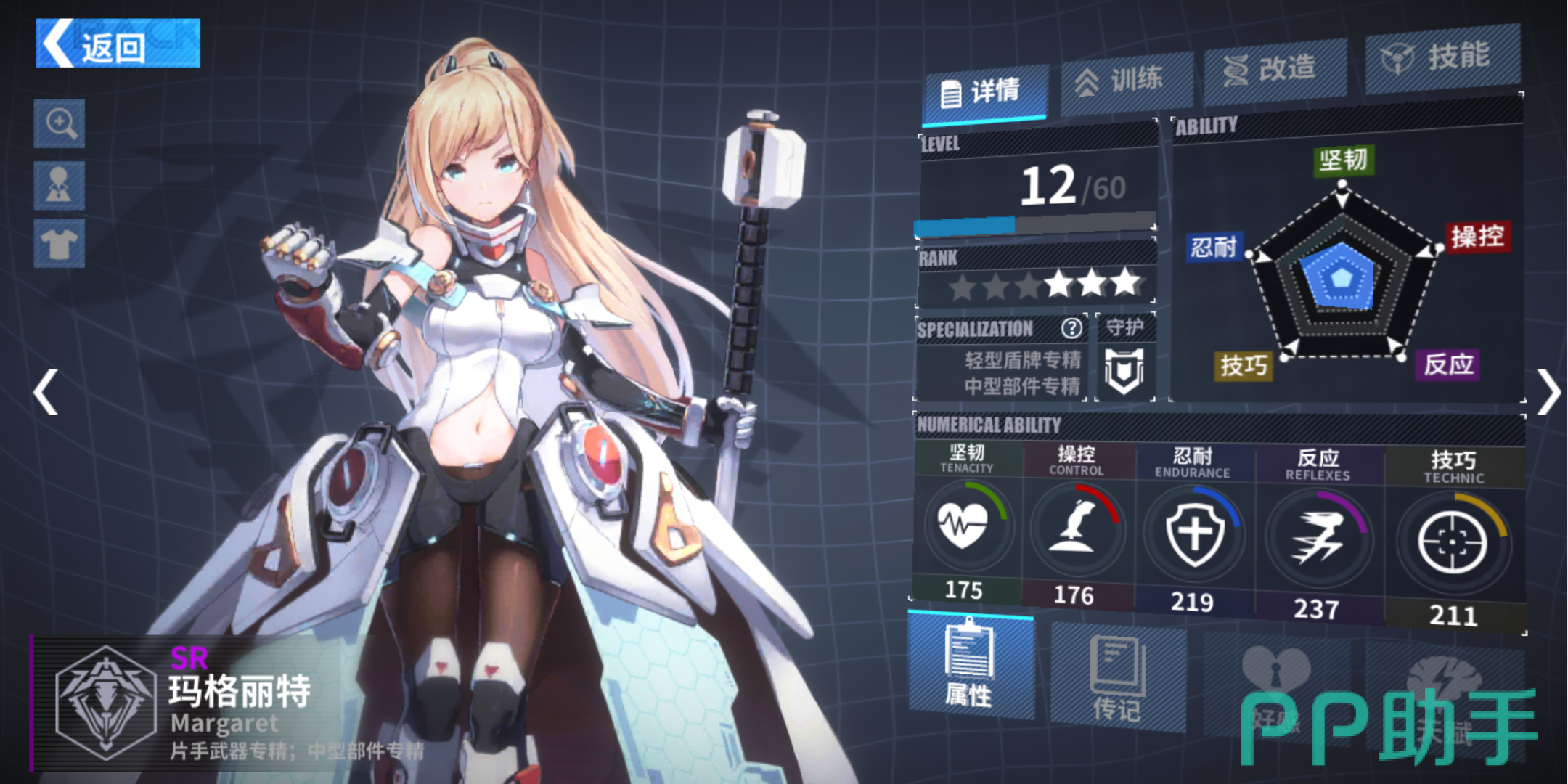 另外,专精重机枪的巴特丽同样也是玩家前期不错的选择,巴特丽比较吃技巧和反应这两种属性,走的路线也是闪避+命中流。在机师改造界面,玩家只需要消耗一定的战斗序列,即可为巴特丽升星,获得被动技能。