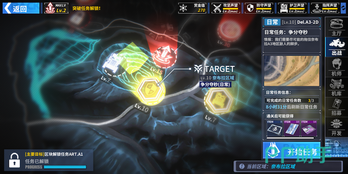 首先是佣兵团。如上图所示,游戏的佣兵团等级主要是靠三类作战任务获取经验进而提升。在这之中,提升等级最快的当属剧情任务。