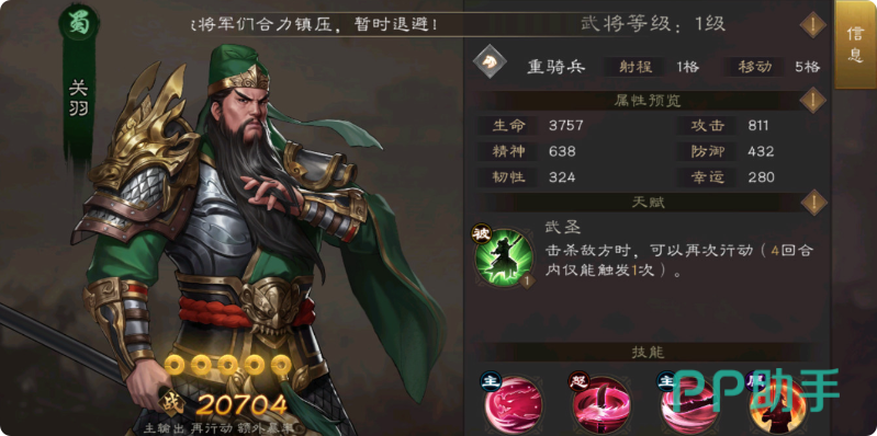 同时,在自选神兵的分配上,也要毫无悬念地优先选择关羽神兵,直至将其提升至3星,这是因为关羽神兵在达到3星后,会解锁一个至关重要的核心机制,即杀敌后可以延续美髯公buff,美髯公buff能够让关羽的攻击能力提升20%,倘若没有3星神兵来维持该buff,那么在开局仅仅2回合后,关羽就会失去这一重要加持,导致其攻击能力下降一个档次,而对于氪佬玩家而言,他们可以直接将关羽神兵拉到5星,因为5星神兵只需暴击即可无限续buff。
