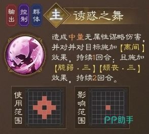 貂蝉的主技能之一诱惑之舞,每当她释放这一技能时,便能够对敌方造成高达 120%无属性谋略伤害,然而这一技能的真正恐怖之处还不仅仅在于其强大的伤害输出,更在于技能释放之后所带来的连锁反应,她会对目标施加离间的减益和控制效果,一旦敌方目标陷入离间状态,会彻底失去全部的操作能力,而此时他们会随机对友方发起攻击,这种不确定性恰恰是貂蝉战术运用的精妙之处,因为敌方的这种随机攻击不仅会打乱其自身精心策划的战斗部署,甚至还会误伤己方的其他单位,而我方则可以巧妙地利用这一混乱局势,从中寻找破绽。