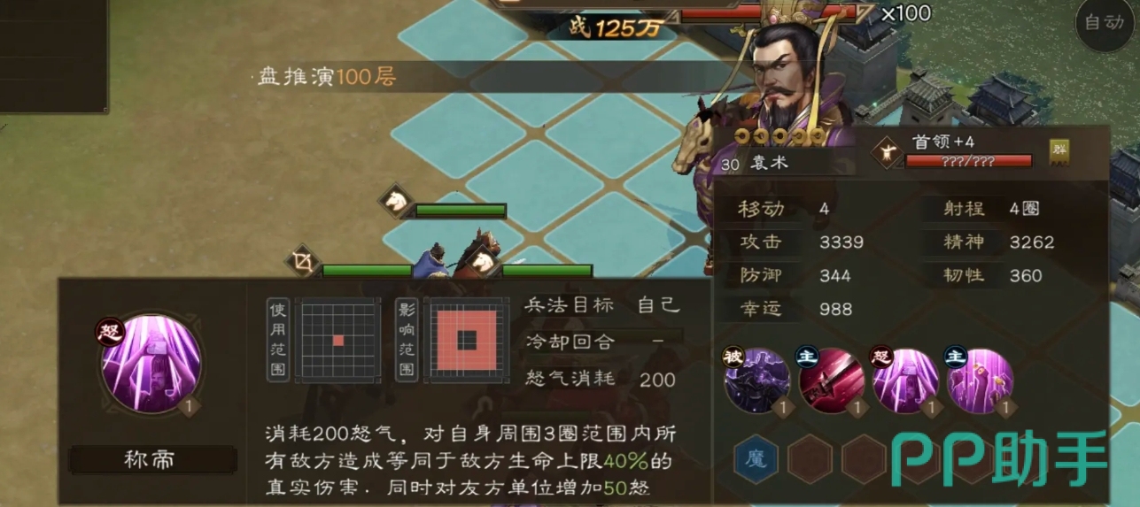 再看张飞的怒气技能万夫不当,这是一个群体性质的强大技能,使用时会消耗200怒气,当技能发动时,首先会对自身施加万人敌效果,万人敌存在时间是3回合,在生效时间这个增益是可以进一步提升张飞的战斗能力,同时带来的兵刃效果从少量变成了中量,也可以看成是一个群体输出,对于被暴击的敌方,还有控制类的混乱可以施加在场上。
