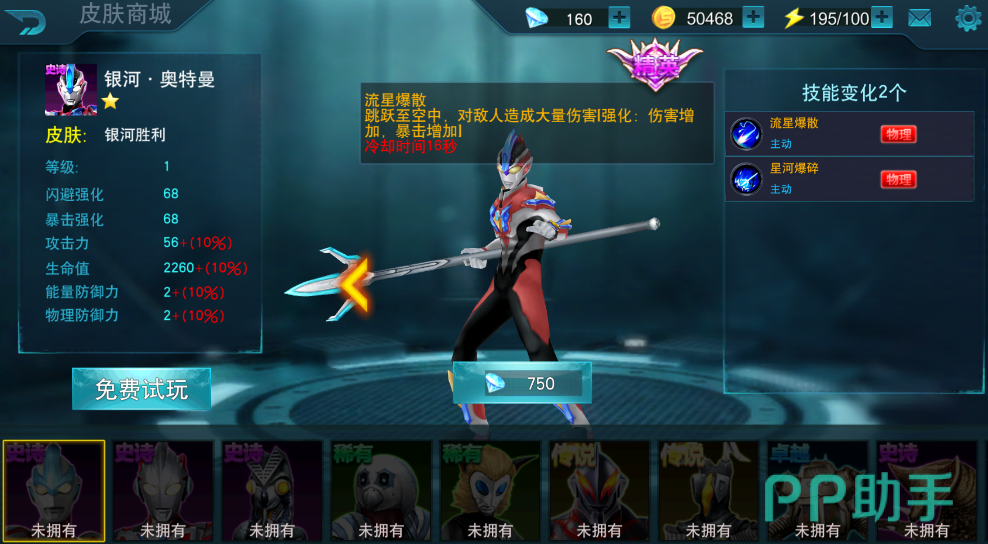 而在攻击上面我们可以选择银河奥特曼,这位英雄的6个技能都是属于攻击类型的技能,并且皮肤状态下的流星爆散技能也有着暴击加伤害的技能效果,并且这位英雄还比克克制雷欧的闪避效果,即使攻击被闪避了也能锁定敌人,从而强化下一次的伤害!所以即使没有这位英雄的皮肤状态,就但是正常形态伤害也能够打的雷欧毫无还手之力!