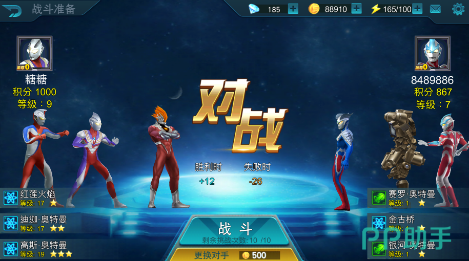 这款游戏中也有排位赛的存在,在奥特竞技场中,玩家可以挑战其他玩家,从而提升自己队伍的积分,从而达到更高的段位。