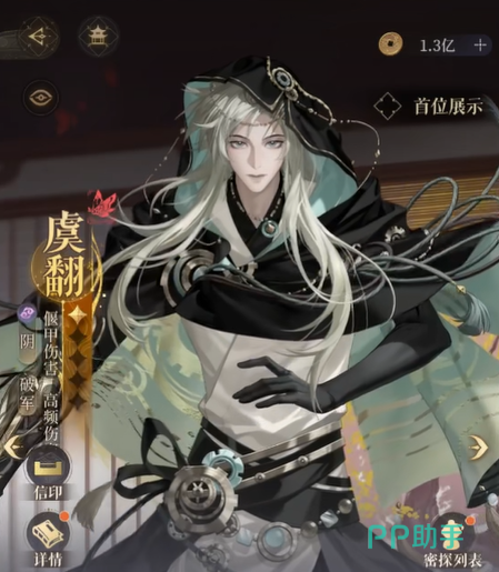随着5月29日的更新,游戏将迎来一位全新密探角色——如鸢虞翻。今天小编就带来如鸢虞翻介绍。他的加入为游戏的战术格局带来了新的变化,作为一位阴属性角色,虞翻不仅拥有强大的单体输出能力,还能够通过独特的机制给敌人施加持续压力,为团队提供额外的增益效果。接下来,我们将对虞翻的技能进行详细分析,帮助玩家更好地理解他的强度和潜力。