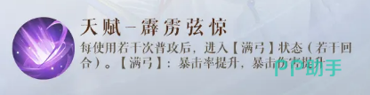 但如果你以为如鸢诸葛瑾只是一个靠技能暴力输出的角色,那你就错了。他的天赋技能——“霹雳弦惊”,每使用若干次普攻后,他将进入【满弓】状态,这一状态下,他的暴击率和暴击伤害都将得到显著提升。这不仅仅是输出上的增强,更是让他在短时间内达成超高爆发的利器。而这个满弓状态,一旦开启,无疑能给敌人带来致命的打击。