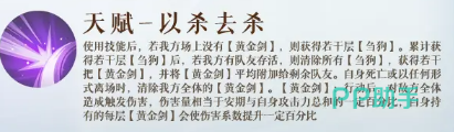 安期的天赋技能“以杀去杀”,一开始听起来有点吓人,但实际上它为她带来了极大的灵活性。每次使用技能,如果场上没有“黄金剑”,她就会获得若干层“刍狗”。这些“刍狗”看似是负担,但实际上,它们能在累计到一定层数后被清除,并转化为“黄金剑”,这些剑会平均分配给剩余的队友。最关键的一点是,若安期自身死亡或以其他方式离场,全队的“黄金剑”都会被消除,给敌人带来不小的威胁。