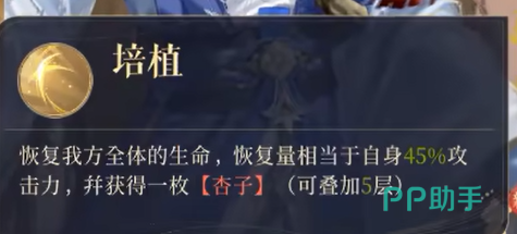 董奉的普通攻击“培植”则具有回血效果,并且回复量基于自身的百分比攻击力。这意味着在战斗中,他能够通过普通攻击为队友提供稳定的治疗输出。而且,值得注意的是,他的普通攻击还会生成“杏子”,这些“杏子”可以进行叠加,为后续的技能释放提供重要资源。