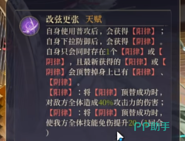 至于曹植的天赋“改弦更张”,这个技能的妙用就在于他能够灵活地应对不同的战局。普通攻击后,曹植会获得“阳律”或“阴律”状态,而这两者的不同效果,决定了他在战斗中的定位。阳律可以让曹植对敌方造成持续的伤害,而阴律则能提升队伍的免伤效果,为队友提供更强的生存能力。这一机制的巧妙之处在于,曹植可以根据战况的变化自由调整,始终为队友提供合适的支持,保证队伍在不同战局下的强大应对能力。