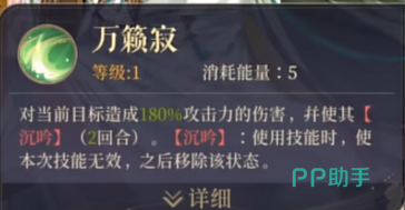 如果你以为曹植只是辅助型的角色,那你就错了。他的技能“万籁寂”是他的核心技能之一,它能够对目标造成伤害并附带“沉吟”效果,简言之,就是让敌人无法使用技能。这项技能的最大亮点在于,它能够在关键时刻阻止敌人释放强力技能,给你的队伍创造宝贵的反击机会。在面对那些大招威力巨大的敌人时,曹植的存在简直是敌人噩梦的开始。