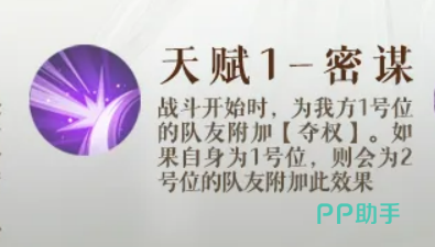 先说天赋"密谋"。战斗一开始,庞羲会自动给1号位的队友附上【夺权】。如果庞羲自己站在1号位,那就转移到2号位身上。这个天赋是被动触发的,不需要手动操作,但站位要提前想好。1号位一般建议放输出能力强的角色,这样开局第一时间就能进入有效状态。