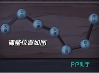 七星连珠的线索可以根据布条上的文字进行摆放,通过文字可以知道,天恒星是最亮的,恒星是最暗的,所以可以依照这个顺序对星星的亮度进行调节,这时候就要把天恒星的亮度调节为最高,而要把恒星调节成最暗,其余的星星按照提示可以知道,亮度是相同的,所以按照提示调节完成就可以通过关卡。