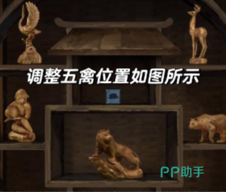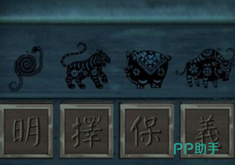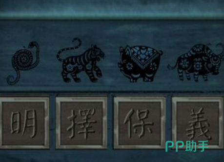 根据五禽戏的动作去旁边的木架上调节五种动物的位置,然后玩家就能收获一块刻着荷花的石头,书房的线索破解完之后,需要再次回到卧室查看脸盆旁边的木架,在木架上有四条朝各自方向游动的鱼,每条鱼都对应着不同的植物,然后玩家就能根据顺序解开旁边衣柜上的锁,打开衣柜之后就会得到一把剑。