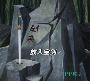 15、再回到竹林门口将宝剑放到林子岩石上,会发现水池的水在退下去。