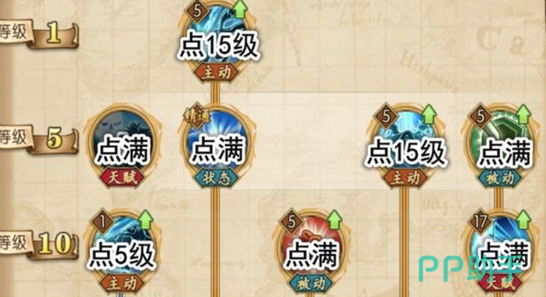 碎敌点到15级,状况斩断点满,可以用来减少血量。一旁的大气分割是完结技能单体伤害,这里不发动用,因而点到5级,状况眩晕点3级前。奥义点满,每回合都可以运用,奥义状况点满,天赋点满、被动点满。