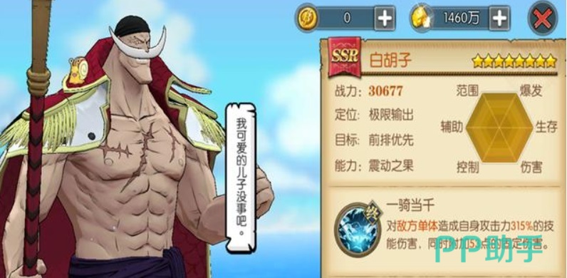 事实上白胡子一点也不极限,因为白胡子的自我保护技能特别强,这个极限是靠近输出的极限。其一骑当千的状况大招,更可以获得500%的伤害提升,统共是850%的伤害指数值,迄今为止,简直没谁了。