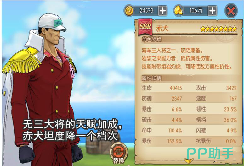 但是此天赋必须三大将同时上场,这就将这三人给束缚住了(早期两人登场便有效)。PVP或许青雉还能玩玩,但刷剧情青雉真的是等同于废卡。而在剧情日益艰难的情况下,再拖着一个张废卡刷剧情,很痛苦。因此,青雉在剧情中被无奈抛弃,而随着青雉被抛弃,赤犬的坦度也就成了问题,进而遭到了玩家的嫌弃。